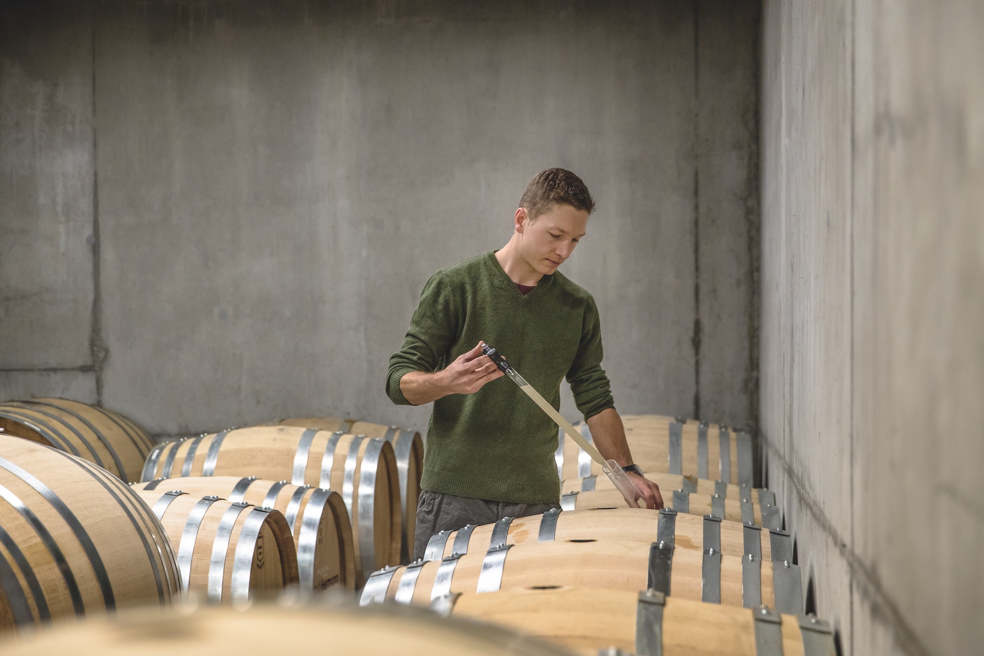 Roman Hermann ist mit Geburtsjahr 1987 jung, bereits mit knapp 30 Jahren übernahm er den elterlichen Hof in Fläsch in der noblen Bündner Herrschaft. Er brach nicht mit der Art des Weinmachens seines Vaters, aber setzte doch neue Massstäbe. So verwendet er bedeutend häufiger das Barriquefass als sein Vater. Er ist überzeugt, dass es vor allem dem Chardonnay und dem Pinot Noir guttut, wenn diese eine Zeit lang engen Kontakt mit den getoasteten Barriquefässchen haben.